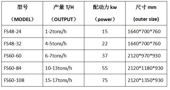 錘式粉碎機(jī)的技術(shù)參數(shù)