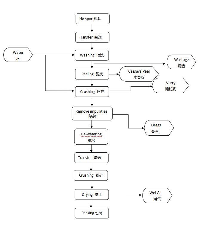 木薯全粉加工設備工藝流程:此流程為人工操作自動成套系統(tǒng)木薯全粉設備,同時我公司還為用戶配備自動控制系統(tǒng)。全粉烘干專業(yè)設備。比傳統(tǒng)烘干節(jié)能一半以上,輸送→清洗→脫皮→破碎→除雜→脫水→輸送→粉碎→烘干→包裝→入庫。