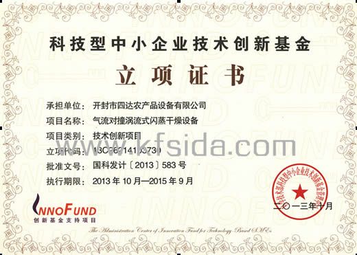 氣流對撞渦流式閃蒸干燥機申請的國家總小企業(yè)基金正式立項,并頒發(fā)了立項。