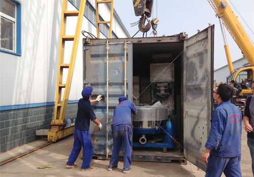 發(fā)往尼日利亞客商的日產(chǎn)50噸木薯淀粉加工設(shè)備集裝箱現(xiàn)場(chǎng)
